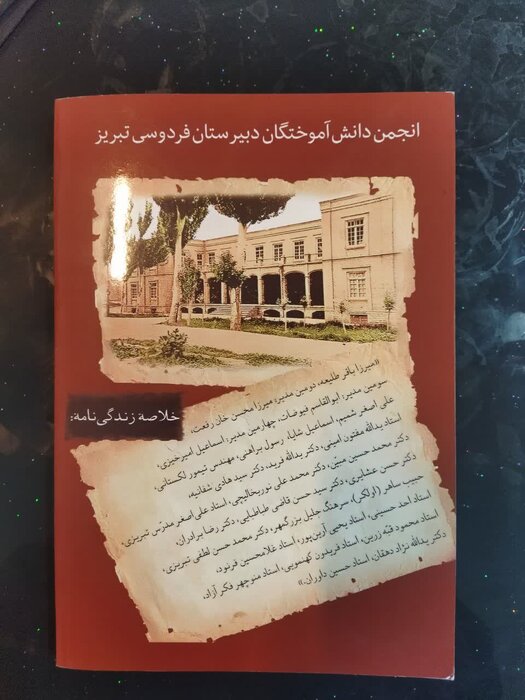 پشت جلد کتاب تازه منتشر شده درباره دبیرستان فردوسی تبریز